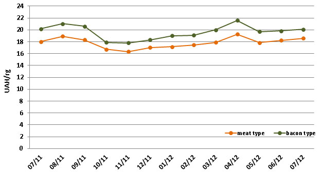 Figure 1. Live pigs price dynamics, July 2011. – July 201 , UAH/kg (according to the data of meat processing companies )