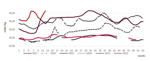 Further farm-gate price movement predictions remain mixed. Some expect upward movement to continue, others, on the contrary, wait for the price weaken and reach more comfortable level of 35 UAH/kg.