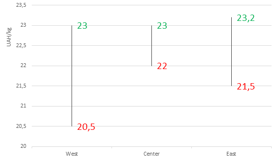 Expectations toward the regional price variations of live pigs on the 7th week, UAH/kg