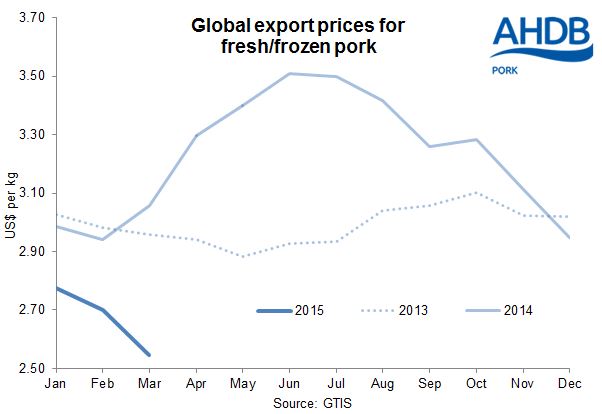 Global pork prices were exceptionally high in 2014, at least outside the EU, whereas this year, it looks like the opposite will be true.