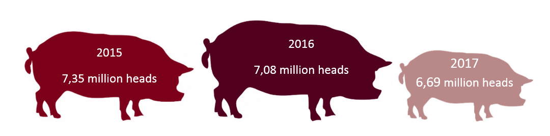 The number of pigs is estimated on the level 6, 69 million heads, as a condition on the 1st January. This is a decline of 5,5% or 390 ths. heads from the last year. It is reported by analytical department of The Association of Ukrainian Pig Breeders with a reference to the State Statistics Service.