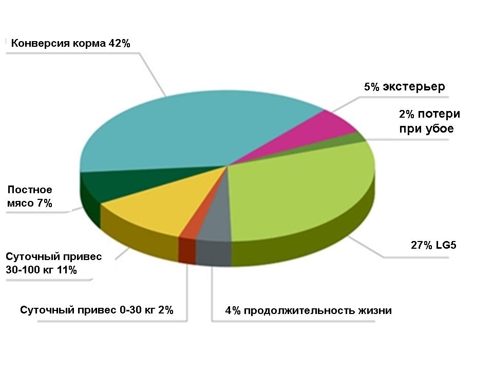 Термин «цели племенной программы» - собирательный для характеристик, которые должны быть улучшены путем селекции. Отправной точкой для формирования целей племенной программы является рентабельность производителей свинины и боен. Цели селекции системы DanBred сегодня включают в себя следующие характеристики: