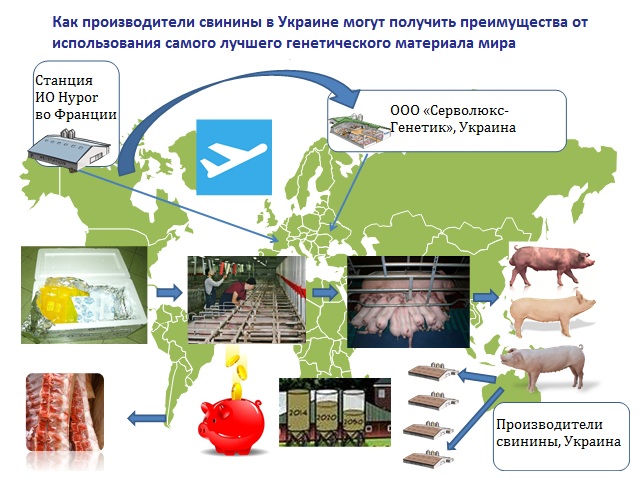 Благодаря использованию импортированной спермы, компания ООО «Серволюкс-Генетик» предлагает племенных хряков с улучшенными показателями производительности и, соответственно, меньшей себестоимостью производства откормочных свиней. То есть, используя наше племенное поголовье у себя в хозяйстве, вы можете повысить вашу прибыльность производства.