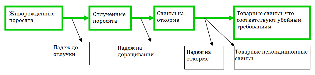 Товарные свиньи, которые соответствуют убойным кондициям (FMV — Full Market Value) — это свиньи весом более 90 кг без травм, повреждений или других дефектов и соответствуют всем требованиям мясоперерабатывающих предприятий. Животные non-FMV — не соответствующие вышеназванным требованиям, реализуются по цене, которая составляет 75% от рыночной.