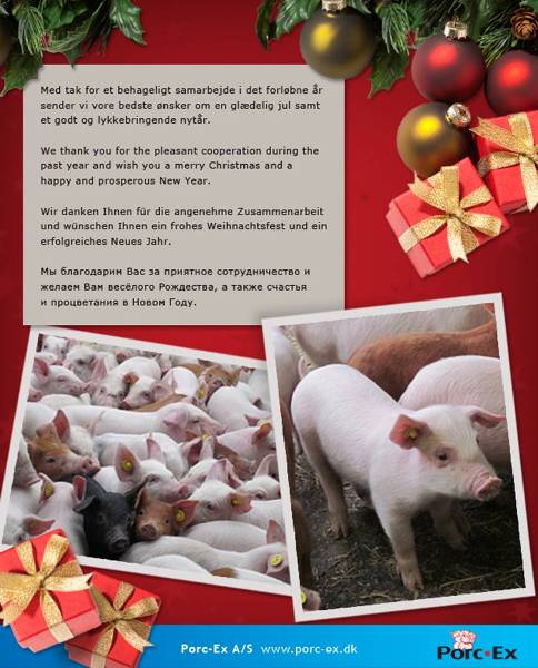 DanBred International, | Уважаемые производители свинины! От лица DanBred International поздравляем Вас с наступающими праздниками. Мы надеемся на продолжение/налаживание тесного сотрудничества в 2012 году, для внесения нашего вклада в успешное развитие Вашего бизнеса. Мы сделаем все возможное, чтобы позволить Вам извлечь наибольшую выгоду из текущего генетического улучшения в свиноводческой системе DanBred путем сервисного решения от DanBred International. Желаем Вам счастья и процветания в Новом Году! |