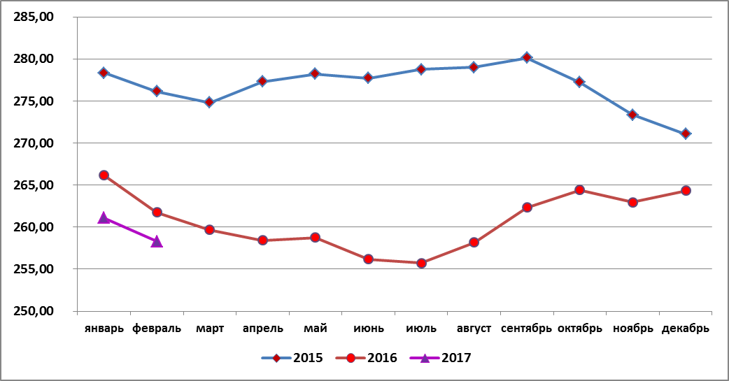 февраль | 276,14 | 261,73 | 258,29 |