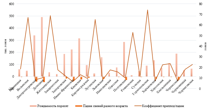 Средний коэффициент приплод/падеж по Украине составляет 10,79. Поэтому на каждую павшую голову приходится почти 11 новорожденных поросят. Рекордных отметок этот показатель достигает в Тернопольской (74,3), Житомирской (69) и Волынской (67,3) областях.