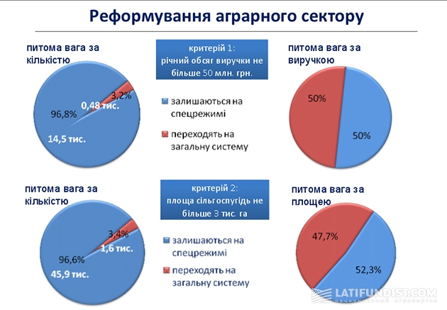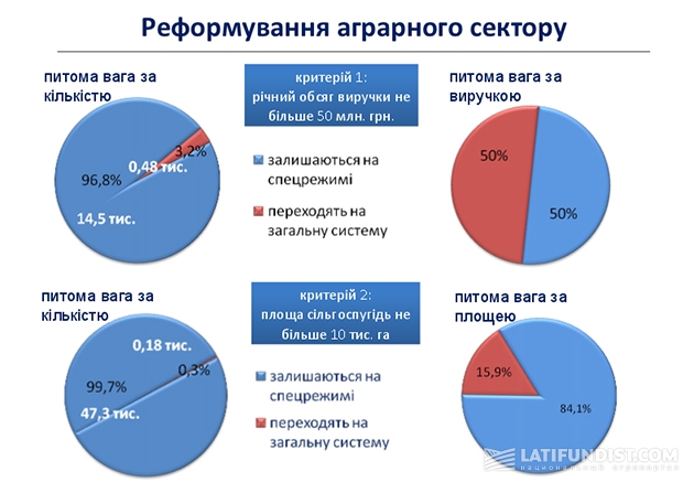 При этом к 2018 г. обещали сохранить льготный режим аккумуляции НДС для всех сельхозпроизводителей. На едином фиксированном налоге оставить должны были тех предпринимателей, годовой доход которых не будет превышать 50 млн грн, а обрабатывать они будут до 10 тыс. га земли.