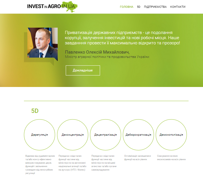 На этом портале инвесторы смогут ознакомиться с каталогом всех сельскохозяйственных госкомпаний, их производственным потенциалом, современным состоянием материально-технической базы, финансовыми показателями. Кроме того, потенциальные инвесторы смогут в режиме реального времени отслеживать процесс оформления документации по каждому ГП, подготовки к приватизации, смене руководства и тому подобное. «Следовательно, если какой-то из процессов остановился, будет видно, на каком этапе это произошло и какое ведомство за это ответственное», — подчеркнул Алексей Зубрицкий.