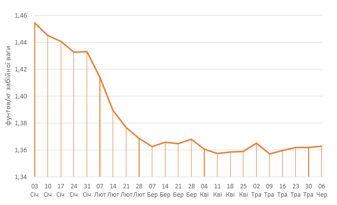 Такое значение существенно ниже (на 18,1%) уровня цен на соответствующую дату прошлого года. Однако их неизменность на протяжении последних недель мая — начала июня дает фермерам надежду на дальнейшую положительную динамику.