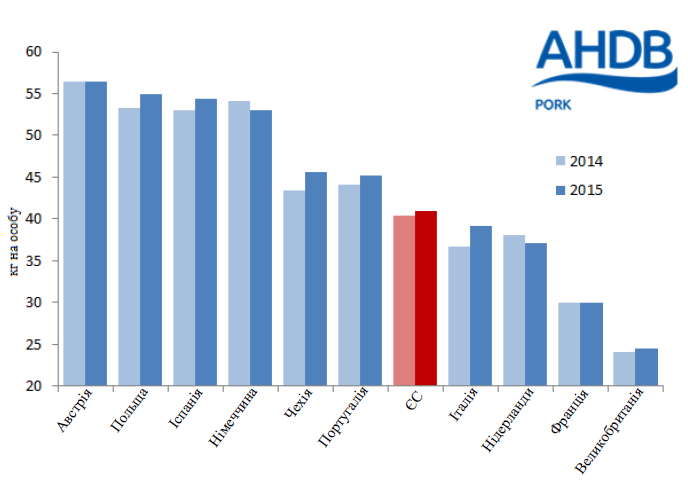 Несмотря на улучшение общеевропейских тенденций, последние данные свидетельствуют о некотором сокращении потребления свинины в отдельных странах Европы (преимущественно на севере и западе). В частности к таким относятся Германия, Франция и Нидерланды. В юго-западных странах-участницах в прошлом году ситуация наоборот улучшилась. Касаемо Великобритании, здесь потребление свинины несколько возросло — до 24,5 кг на человека. Такой показатель не помог Соединенному Королевству выйти в лидеры и оно отстает от остальных европейских стран, демонстрируя объемы ниже уровня 2012 года.