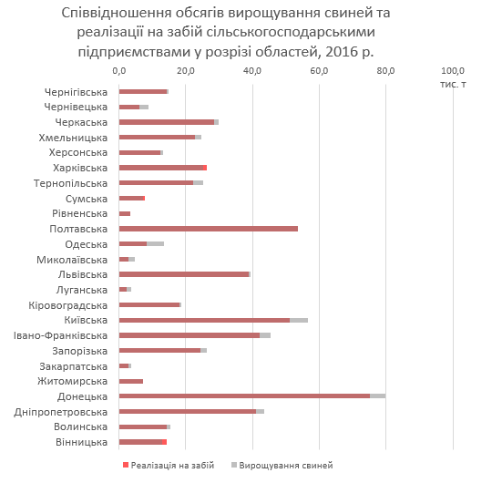 В целом по стране, объемы убоя составляют 93,8% с полученного за 2016 и прироста живой массы свиней в промышленном секторе против 94% в позапрошлом году. Уменьшение этого показателя является положительным признаком развития отрасли.
