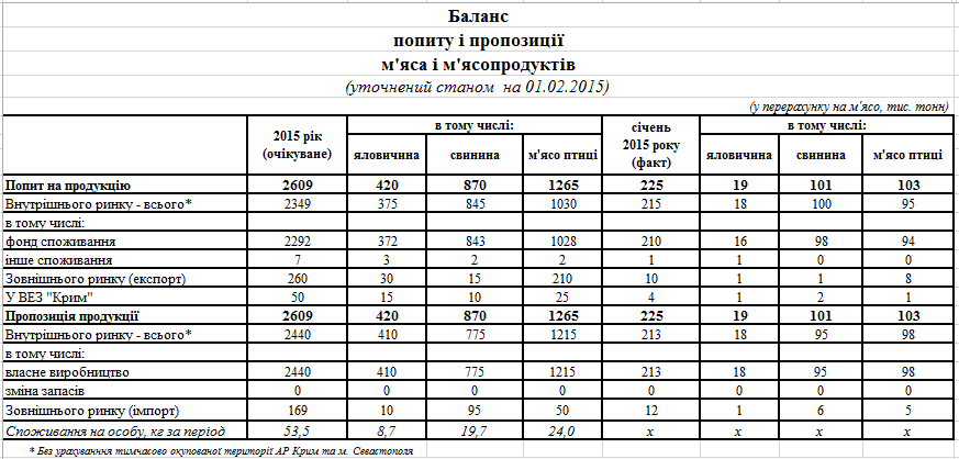 Баланс попиту і пропозиції м`яса і м`ясопродуктів (січень 2015)
