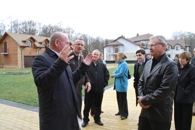 Экскурсия по селекционно-генетическому центру прошла на автобусе, главным экскурсоводом стал президент компании – Николай Агурбаш. Сначала представители канадской стороны посетили строящийся модуль. Здесь Н.Г.Агурбаш рассказал гостям, как и почему были выбраны именно канадские технологии, продемонстрировал на наглядном примере как соблюдаются все тонкости строительства при возведении комплексов.