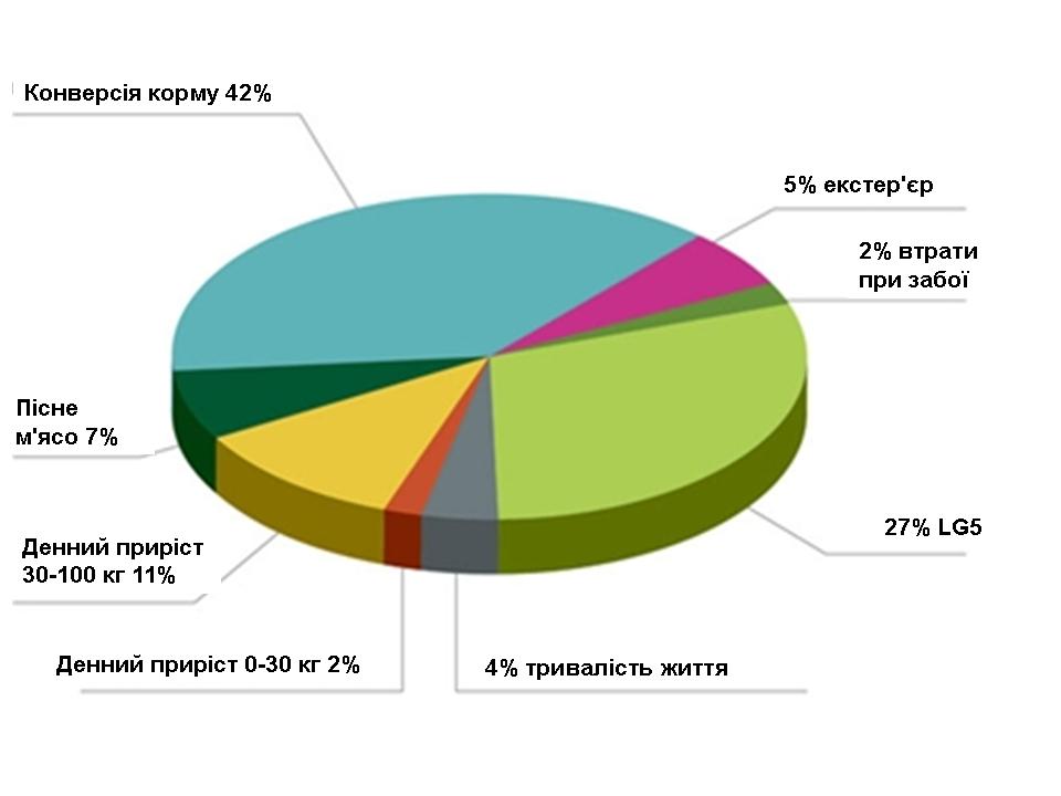 Характеристики батьківської лінії породи Дюрок і розподіл племінного прогресу (визначається на основі економічної ефективності) |