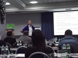 Як повідомив директор «Агравіа АГ» Сергій Бондар, нині в країні зареєстровані та реалізуються 35 найменувань продуктів, вироблених на європейських та російському заводах Agravis Raiffeisen AG. «Другий рік ми працюємо з продукцією компанії «Дезінтек» і бачимо наростаючий інтерес сільгосптоваровиробників до цієї лінійки,» - повідомив на відкритті семінару пан Бондар.