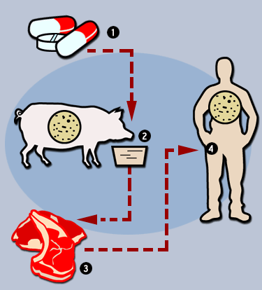 Проблема в тому, що з м’ясом або іншими продуктами тваринництва людина може заразитися стійкими бактеріями. Постійно отримуючи мікродози цих ліків у вигляді залишкових речовин у м’ясі, ми знижуємо стійкість свого організму до інфекцій і вбиваємо корисну мікрофлору.