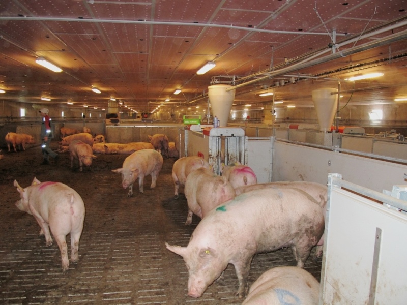 Ще одна особливість цеху для поросних свиноматок — оригінальні станки для кнурів, оснащені приймальною антеною. По обидва боки станка — бокси свиноматок, в кожному з них утримують по 110 голів. Якщо свиноматка наближується до кнура, на центральний комп‘ютер відразу ж надходить тривожний сигнал, і при наступній годівлі тварину або маркують фарбою, або через спеціальний шлюз направляють до проходу. Причиною «неадекватної» поведінки свиноматки частіше всього стає мікроаборт. Електронна система дозволяє оперативно виявити і повернути непродуктивних тварин до цеху запліднення, щоб зекономити корма.