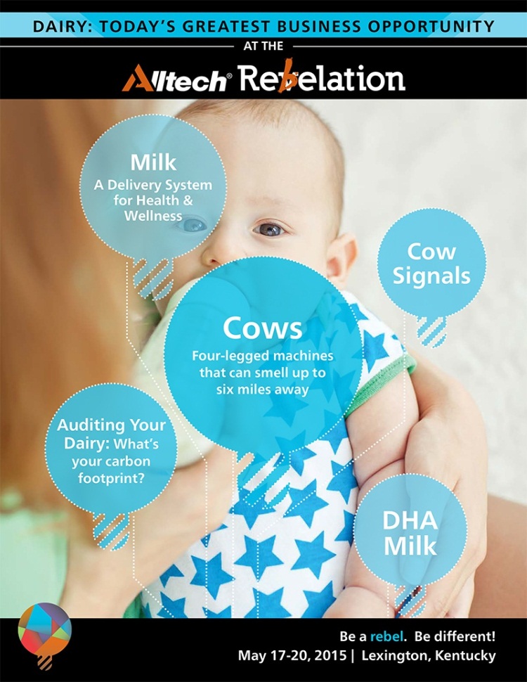 Цей спеціальний симпозіум є частиною програми Alltech REBELation, пов’язаної із дослідженням інновацій, натхненням та ідеями, які можуть змінити світ. Захід відбудеться у Лексінгтоні, штат Кентуккі, США, з 17 по 20 травня. Сесії «Молочна промисловість: Найбільші можливості для бізнесу сьогодні» розпочнуться 18 травня. Перед цим відвідувачі матимуть можливість насолодитися кращим пивом, починаючи із Bluegrass, і закінчуючи напоями зі всього світу на другому щорічному ярмарку Оллтек з пивоваріння та продуктів харчування, який почнеться з 16 травня. 17 травня, у неділю, відвідувачі також зможуть поїхати на кінну ферму у Кентуккі, відвідати завод з дистиляції бурбона та інші експозиції, а також взяти участь у міжнародному святковому обіді для всіх учасників конференції.