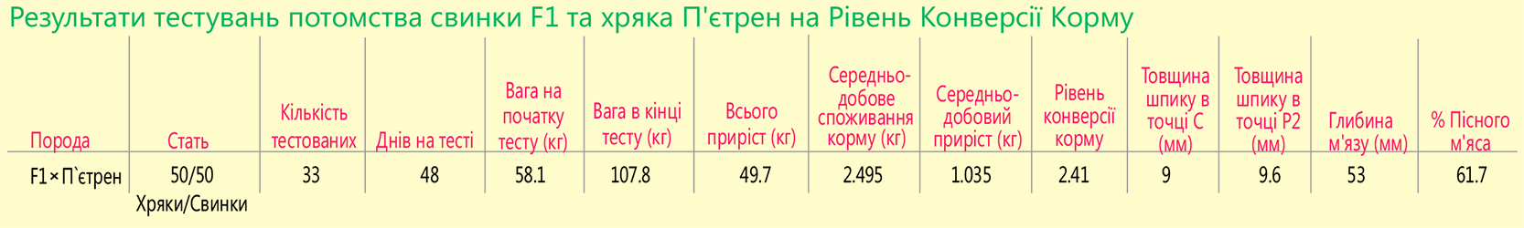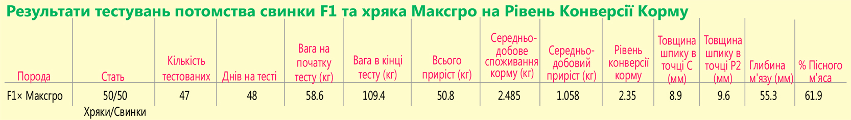 - Високопродуктивні гібридні свинки F1 з репродукторів в Україні, Ірландії та Німеччині.