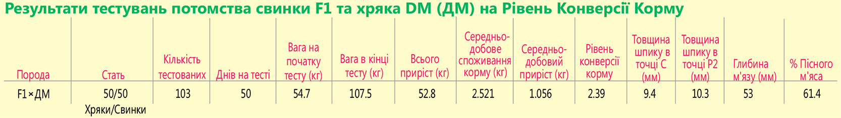 - Високий відсоток пісного м’яса та виходу м’яса з туші;