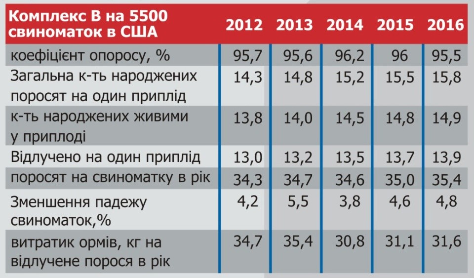 До Вашої уваги найкращі показники свинки Камборо у галузі — покращення з року в рік (комплекс на 5500 свиноматок у США):