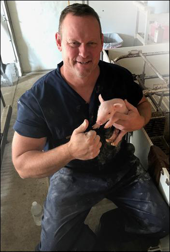 Девід МакГі (PIC) з першим поросям зі зміненим геномом |
