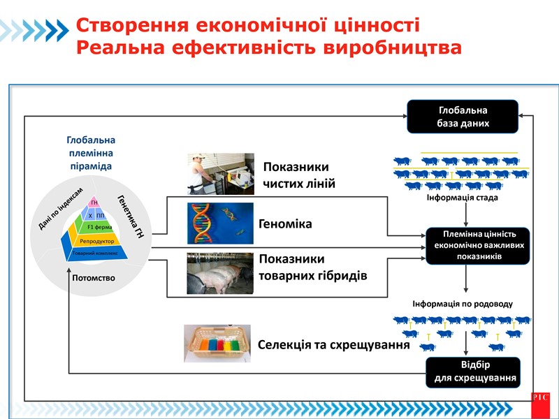 Наприклад, у 2012 у РІС почали застосовувати власну платформу геномної селекції. Ця система дає вченим компанії можливість розшифрувати зв’язки ДНК тварин і покращити точність селекції усіх показників, в тому числі якості м’яса, в племінних індексах. Загалом, це дало можливість збільшити генетичний прогрес більш, ніж на 35%, що дозволило PIC досягти максимального генетичного ефекту за 55-річну історію компанії.