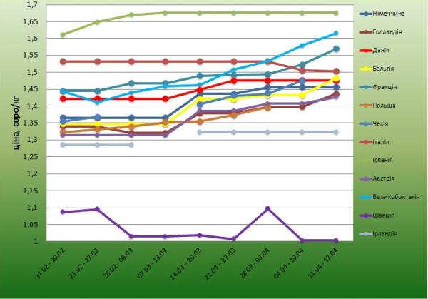 Тенденції на ринку Німеччини: Разом із приходом теплої погоди серед споживачів стрімко зростає попит на свинину для барбекю, тому роздрібним мережам доводиться оперативно заповнювати спустошені полиці. Тим часом пропозиція свиней товарних кондицій залишається нижчою за попит, тому на найближчі дні для виробників прогнозують позитивну кон’юнктуру на ринку.
