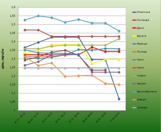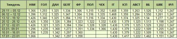 Примітка: для того, щоб забезпечити максимально достовірний аналіз, офіційні дані про ціни із різних країн Європи скореговані відповідно до базової умови.