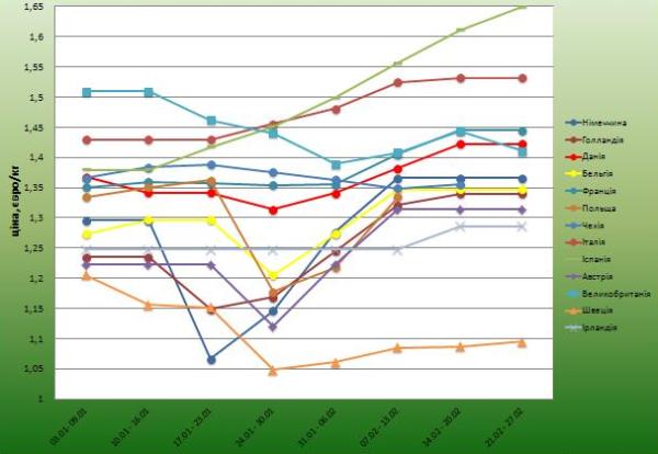 Примітка: для того, щоб забезпечити максимально достовірний аналіз, офіційні дані про ціни із різних країн Європи скореговані відповідно до базової умови.