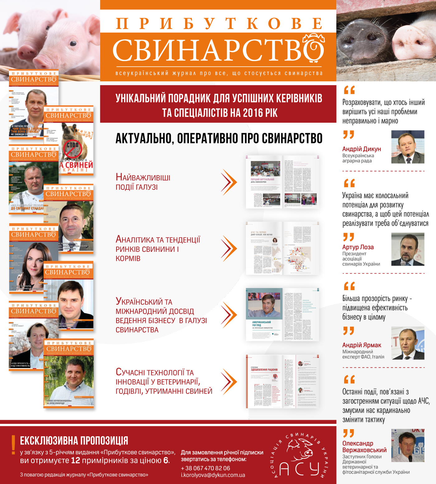 Журнал «Прибуткове свинарство» — унікальне спеціалізоване видання в Україні, присвячене виключно свинарству. Перший номер з’явився у вересні 2010-го року.