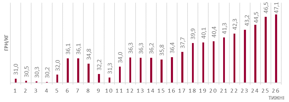 Зазначимо, що хоча значна частина операторів з боку м’ясопереробки сподівається на послаблення цін до «комфортнішого» рівня (близько 45 грн/кг), інші в умовах нестачі живця вважають більш вірогідною стабілізацію цін. Останнє дозволить ринку «перепочити» від цінових перегонів, а його гравцям — спланувати свою діяльність.