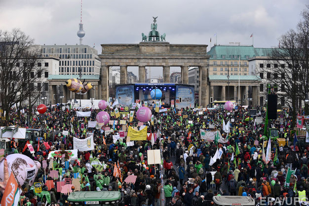 Згідно з повідомленням, акція під гаслом «Ми ситі по горло» проходила паралельно з агропромисловою виставкою Grüne Woche, яка триває в німецькій столиці.