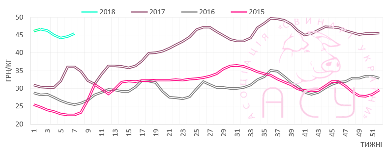 Зокрема, оператори зі Сходу країни змогли скорегувати планову ціну поточного тижню на 0,5-1 грн/кг, а свинарі у центральних та західних регіонах — на 1-2 грн/кг. Таким чином змінився і діапазон, в якому коливаються ціни закупівлі: цьоготижневий становить 44-46,5 грн/кг. За відгуками виробників свинини, активніший приріст цін відчувається саме на Заході та в Центрі через більшу активність м’ясопереробних підприємств у заготівлі передвеликодніх морожених запасів. Крім цього, відзначають деяке пожвавлення споживчої активності у період Масляної перед початком посту.