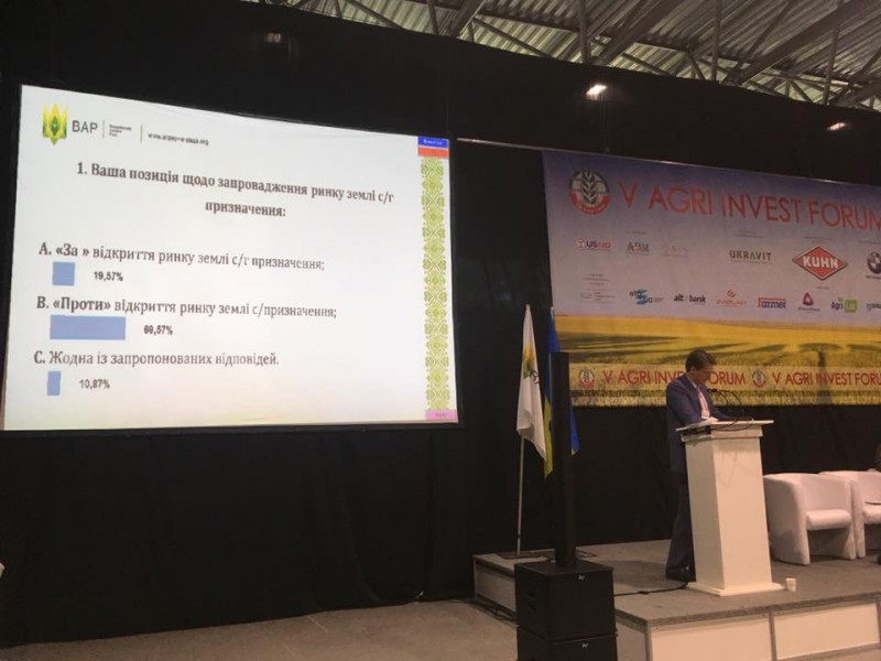 В ході панельної дискусії «Перспективи відкриття ринку землі», що пройшла в рамках Agri Invest Forum 2018, 70% аграріїв проголосувало «проти» зняття земельного мораторію.