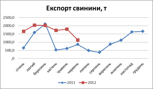 Експорт свинини у червні склав 1 131 т, що на 32% більше, ніж у червні минулого року. Протягом січня-червня загальний експорт свинини склав 10 352 т, що на 63,5% більше, ніж в аналогічному періоді минулого року.