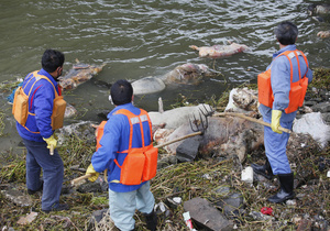 Як раніше повідомлялося, 9 березня з протікаючої в Шанхаї річки Хуанпу виловили понад 900 трупів свиней. За наступні 2 тижні в цій річці були виловлені в цілому більше 10 тис. туш мертвих свиней.