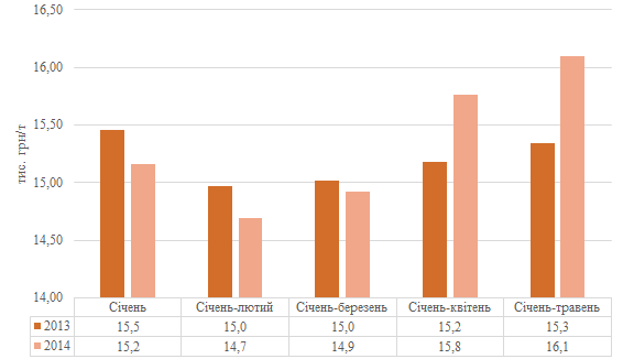 Ціни на свиней від сільськогосподарських підприємств впродовж перших п’яти місяців як зменшилися відносно попереднього року, так і зазнали деякої позитивної динаміки: у січні-квітні зросли на майже на 4,0%, а в січні-травні — на 5,2% у зіставленні з відповідними місяцями 2013 р. Щодо цін на свиней від домогосподарств, то у цьому році вони щонайменше на тисячу гривень менші за ціни минулого року.