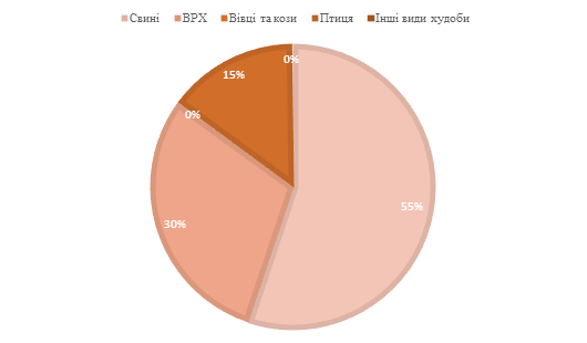 Структура закупівлі окремих видів худоби та птиці переробними підприємствами за I півріччя 2014 року