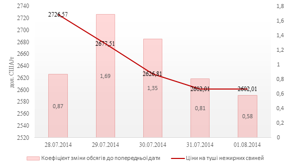 СМЕ: ціни на туші нежирних свиней за період з 28.07 по 1.08.2014 р.