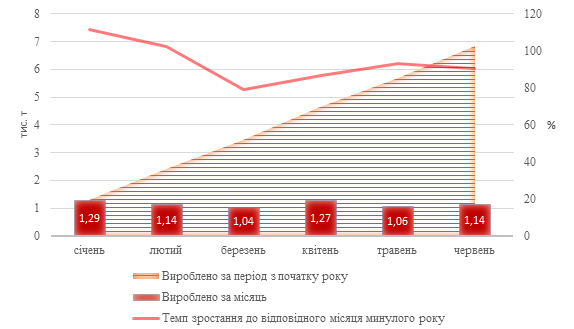 Динаміка виробництва м’яса свиней у відрубах за перше півріччя 2014 року