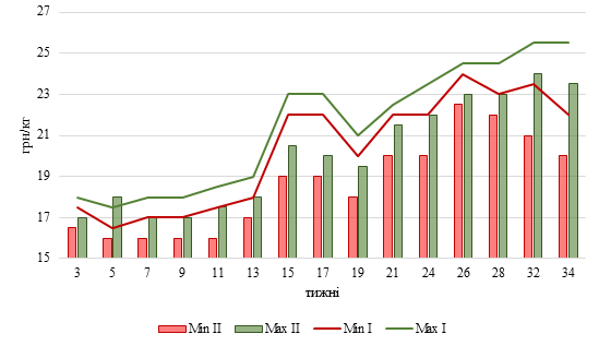 Динаміка закупівельних цін на свиней, грн/кг