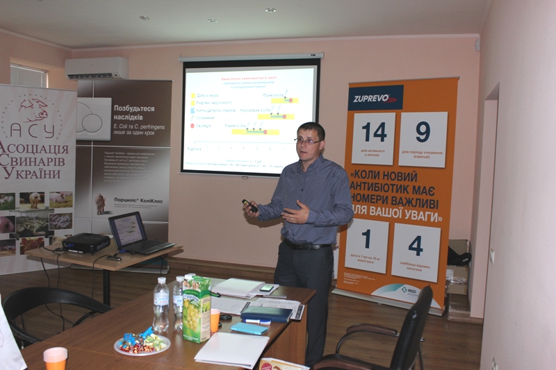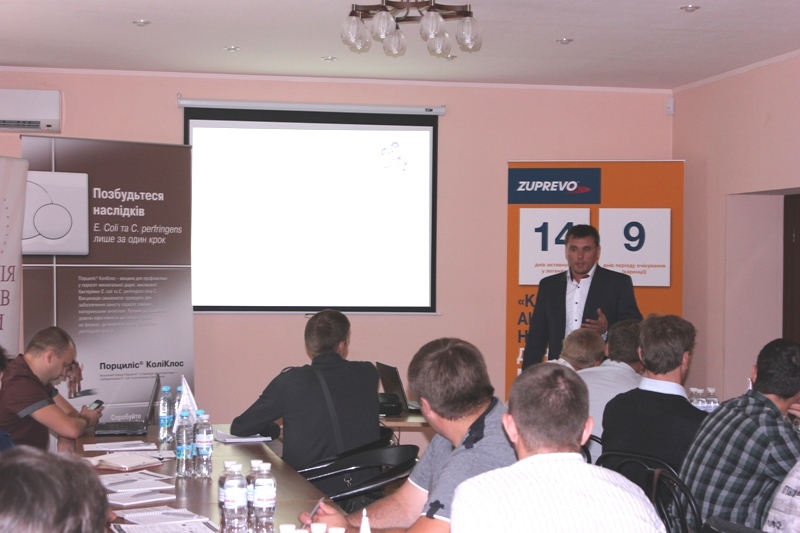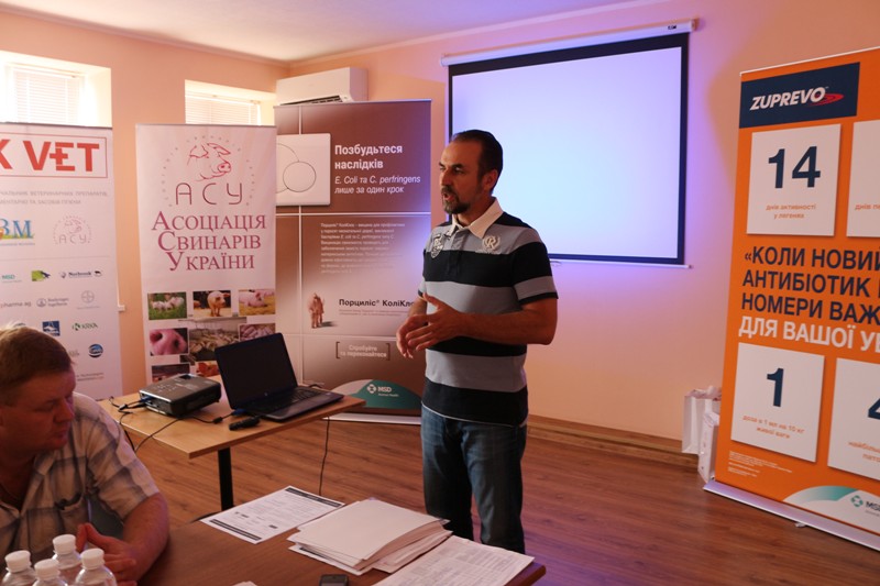 Перед учасниками семінару виступили: Олексій Шептуха з доповіддю про карантинування підприємства, Віталій Піотрович — про хворобу Ауєскі та Віктор Еверт — про епідемічну діарею свиней.