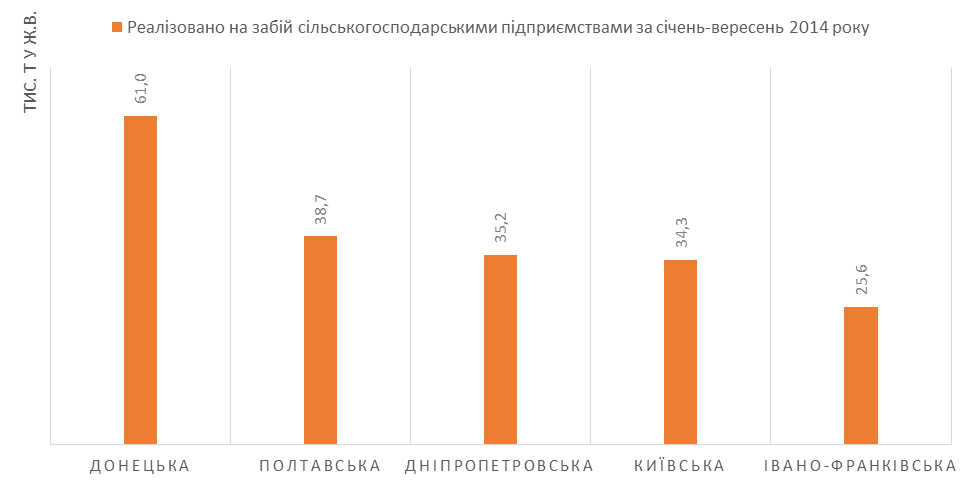 Топ-5 областей за обсягами виробництва свинини на сільськогосподарських підприємствах