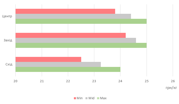 Минулого тижня діапазони цін по країні були трохи нижчими ніж планувалося, однак позитивна динаміка дала про себе знати. Відновлення поставок до Росії, Криму та Молдови послабило напругу на ринку живця.