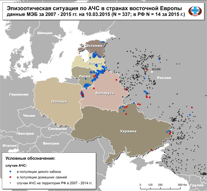 Так, у Латвії за останній рік виявлено 211 вогнищ захворювання, у Литві — 64, у Польщі — 41, в Естонії — 7. Таким чином, на сьогоднішній день в Євросоюзі офіційно підтверджено 323 спалахи АЧС. При цьому вони реєструються як серед диких кабанів, так і серед домашніх свиней. Здебільшого спалахи відзначаються у дикого поголів'я в популяціях поблизу кордонів Польщі, Литви та Латвії з Білорусією.