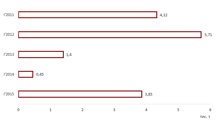 Динаміка експорту української свинини до РФ за І квартал 2011-2015 рр.