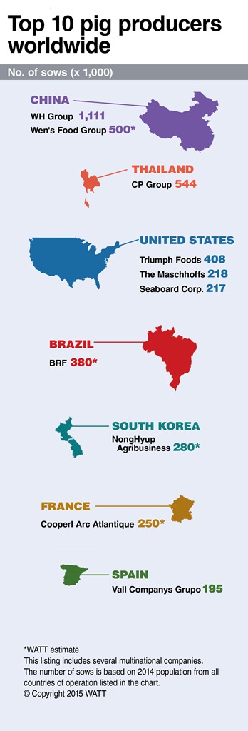 Завдяки опитуванню, проведеному Pig International та ВАТ Global Media були визначені 10 найбільших у світі виробників свиней. Рейтинги базуються на даних, зібраних 1 жовтня 2015, і являють собою виробничі результати за 2014 кожної компанії, пише WATTagNet.