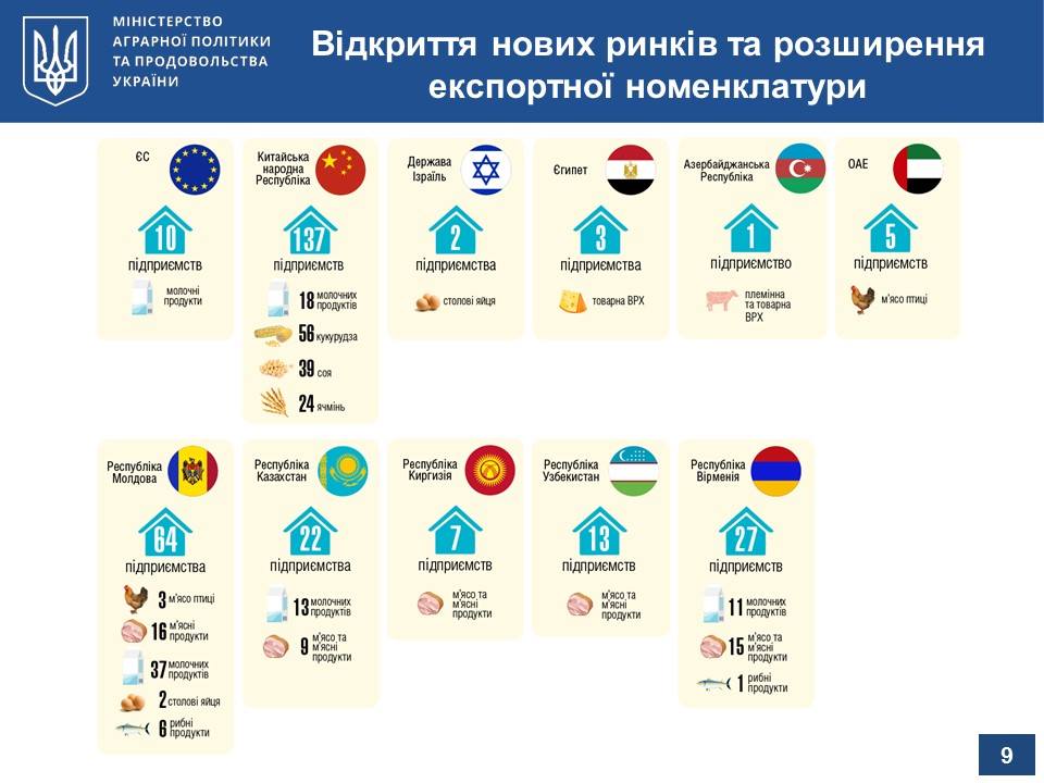 Основними імпортерами української продукції були Ірак, Арабські Емірати, Йорданія, Німеччина і Нідерланди.